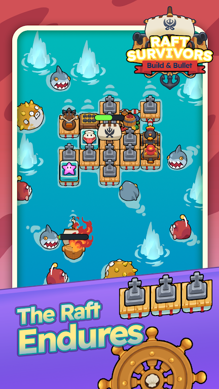 《木筏求生》融合了激烈的弹幕射击和深具策略性的移动塔防玩法,为玩家带来了独特的游戏体验。其鲜艳的视觉风格和流畅的操作体验,让每个玩家都能沉浸在这个充满生存挑战的世界中。通过资源的合理利用和木筏的巧妙建造,玩家将体验到从脆弱到坚不可摧的进化过程,强烈的成就感无时无刻不在激励着玩家前行。