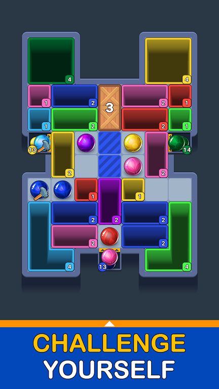 《坠落逃生:色彩谜题》在视觉效果上也做了大量优化。鲜艳的弹珠和清晰的动画效果,使得玩家可以轻松阅读棋盘并规划下一步行动。游戏中引入的特殊洞类型,如冰洞、神秘洞等,为战略布局增添了新的维度,玩家需要思考如何克服这些障碍,实现目标。