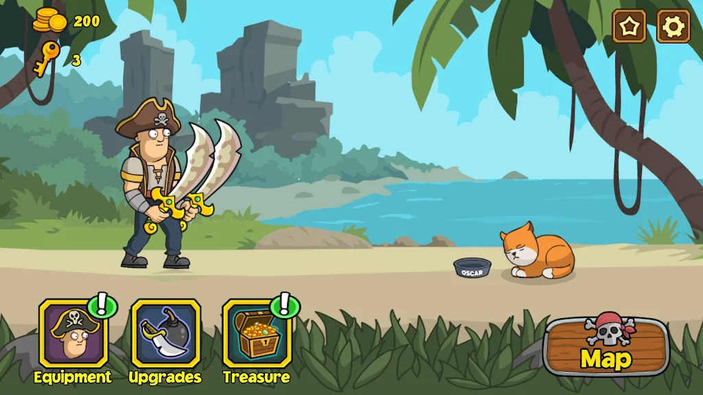 《森雅与奥斯卡:海盗岛》为你提供了一个深度的装备系统,你可以收集多种多样的近战武器,助力提升攻击力。除了武器,你还可以为角色寻找各式帽子和服装,以增强他们的外观和属性。更强大的装备将让你的海盗更加无敌,面对更高难度的挑战。