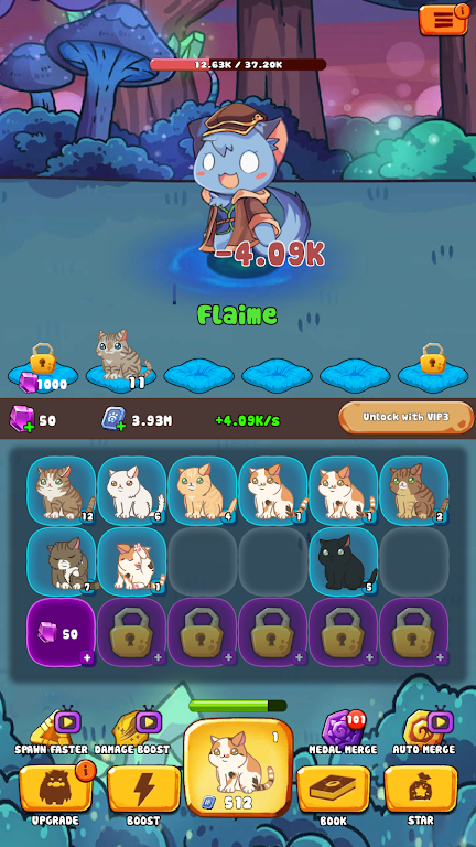小猫的等级越高,其战斗力和技能效果也越为显著。在面对各种敌人特别是强大的Boss时,高等级的小猫能够展现出更高的伤害能力。每一只小猫都有独特的技能属性,玩家在合并小猫的过程中需要考虑不同技能的组合,从而形成最强的队伍来应对各种挑战。合并小猫的同时,玩家还可以通过战斗收集资源,进一步提升和强化小猫,增强它们在战斗中的表现。