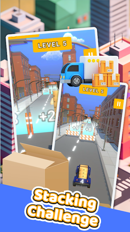 尽管游戏的节奏轻松有趣,但玩家在收集箱子的同时,也必须提防路上的障碍物。锥桶、狭窄通道以及其他障碍物随时都可能出现,玩家需要快速判断、灵活操作,避免这些障碍物,让自己的货物塔不受影响。避免货物坠落,确保顺利完成每一关,是游戏的另一大考验。
