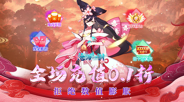 国风唯美仙侠手游《沧海一剑》0.1折免费版高能来袭!全场充值只需0.1折,每天免费送6480元可拆分代金券!开局免费送VIP20,闯关爆福利充值卡,在线再领现金代充券!还有每日扶持魔改充值,绝版奖励轻松到手!您将在辽阔的世界与各种副本探索未知,享受一步步境界突破的修仙乐趣!影视般的视觉效果和唯美的战斗画面,丰富的游戏内容能给您带来不断挑战的快乐!究极的修仙体验正在等待您的到来!变态福利