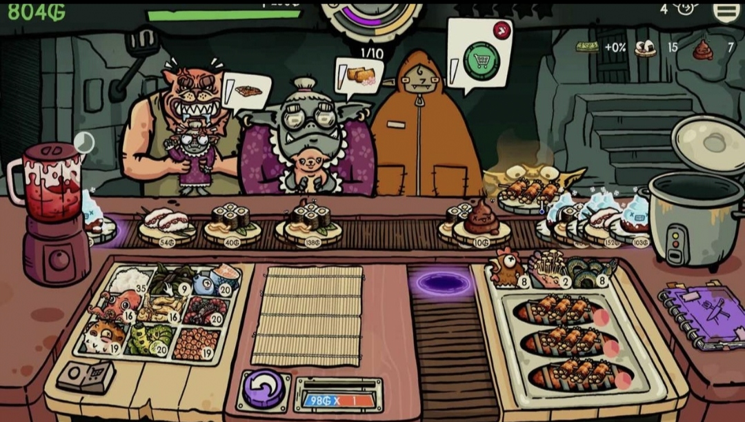 《哥布林寿司》将策略与管理元素巧妙结合,玩家需要通过合理分配资源和时间,有效组织哥布林们的工作。在限时的情况下,你需要升级餐厅的设施,扩展菜单选项,挑选最优质的食材来制作寿司。每一种寿司都有其独特的配方和制作方式,玩家需要合理安排,每一次出餐都要力求完美,以获得顾客的好评和更高的收益。