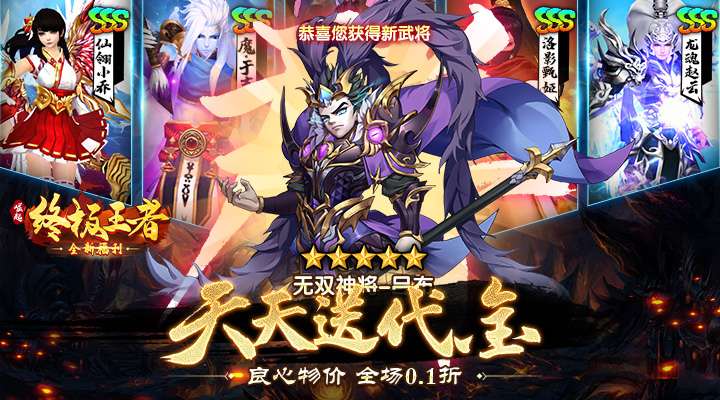天天最高送6480代金券,全场充值0.1折!真正实现“免费玩游戏”,护好你的钱袋子,更护好你的肝。精美丝滑的战斗画面、超高抽卡概率,让你轻松收集三国名将,开启零负担的王者征程。