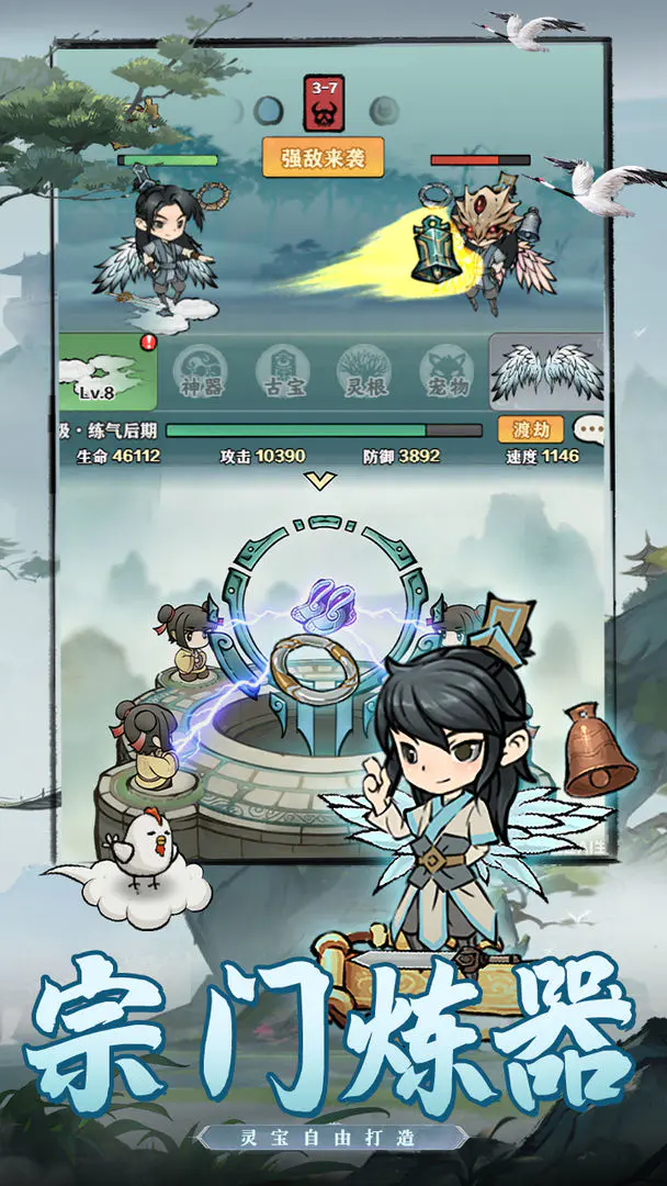 《龙战苍穹》独特之处在于其笔墨互动的玩法。玩家通过触碰屏幕,便可以挥洒出墨迹,仿佛自己在一幅巨大的水墨画中自由创作。白鹤在笔尖翱翔,轻轻振翅,散逸出一缕云烟;青松在纸上挺拔而立,展现出蓬勃生机。这种实时的互动体验让人真正感受到艺术与修仙的完美结合,创造出既美丽又充满生机的视觉盛宴。