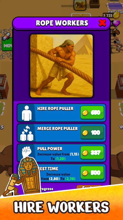 推墓人(辅助菜单)强调雇佣工人的合理分配。不同工人拥有不同的技能和体力值,玩家需根据路况和任务需求选择合适队员参与推动。辅助菜单提供实时数据监控与调度支持,允许玩家对工人状态进行快速调整,有效提升古墓的移动效率。工人之间的配合默契也是通关关键,良好的团队协作能够化解复杂障碍。
