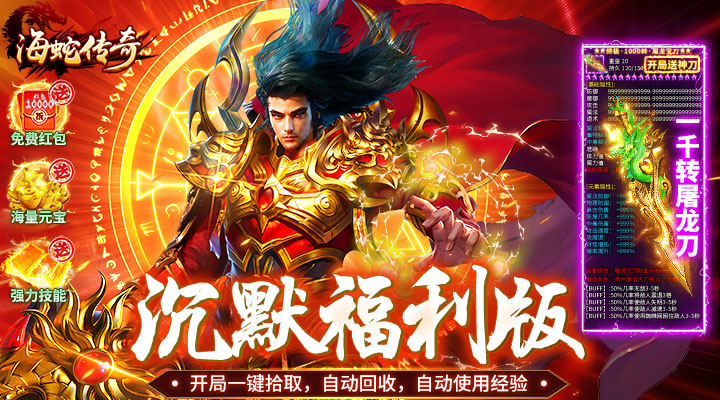海蛇传奇(欢乐版)是一款专属沉默传奇,游戏内置3折福利,每天登录游戏领取10000金刚石红包,游戏内豪礼众多,上线即送一键拾取,自动回收,每天在线领取大量金刚石红包,7日登录还能领取真充红包激活累充奖励。必不可少的更是人人喜欢的首爆奖励,一步先步步先。赶紧加入体验吧。