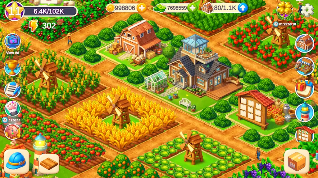 在农场丰收模拟中,建造是游戏的核心元素。玩家可以自由规划农场布局,选择不同风格的建筑和装饰品来打造具有个性化的乡村农庄。无论是存放农具的谷仓、温馨的小屋还是装点环境的园林景观,都可以随意组合,形成一个美观又实用的农场空间。随着游戏进度推进,更多高级建筑将被解锁,丰富的建筑类型和装饰风格满足玩家多样化的审美需求。