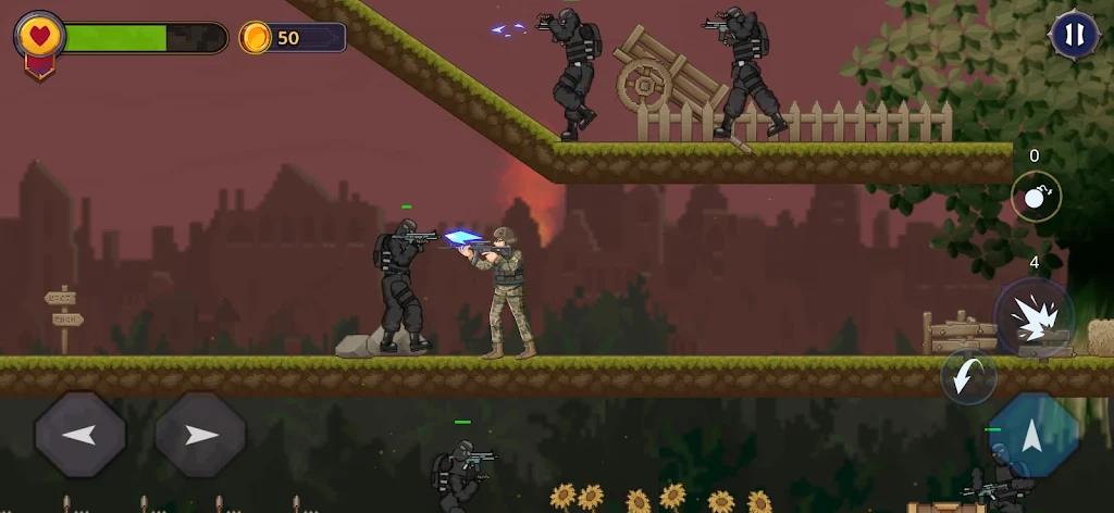 《复仇之战》采用细致精美的2D像素风格,结合现代游戏中高质量的动画技术,呈现出令人惊艳的视觉效果。从阴暗潮湿的地下城到被战火吞噬的废墟,每一个场景都经过匠心设计,充满层次感和细节。环境中的动态光影、流畅动画让玩家仿佛置身于充满生机与危机的战场。游戏画面既保留了经典复古的怀旧风情,又符合现代玩家审美,带来视觉与操作的双重享受。