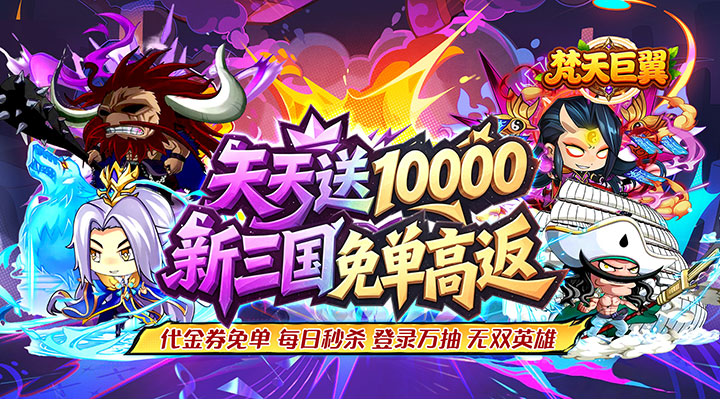 《梵天巨翼》是一款Q版国风题材的卡牌+塔防回合制游戏。你将化身主公,带领英雄们征战天下!烧脑策略秀操作,每个武将也都各具特色,趣味的玩法,休闲的画风,简单的操作,原创“满屏技能释放”,带来燃尽十足的战斗快感,每日福利拉满,永久0.05折,天天送10000代金券,让战斗在你的指尖生动重现。