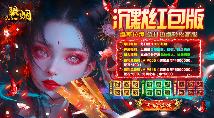 狼烟-Online(沉默红包版)是一款火龙神器单职业!开局送自动拾取,自动回收,超级天命,天天送328红包,在线领海量灵符和抽奖券,七日登录送神兵、称号,高爆率传奇,每个怪都有机会爆出高阶装备,BOSS光柱爆满屏,新版神器等你来战!