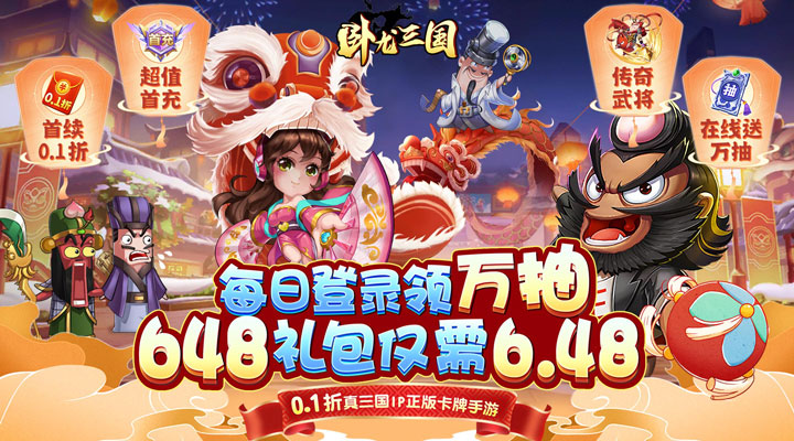 游戏名称:卧龙三国(真·三国送万抽0.1折)游戏标签: 挂机 , 卡牌